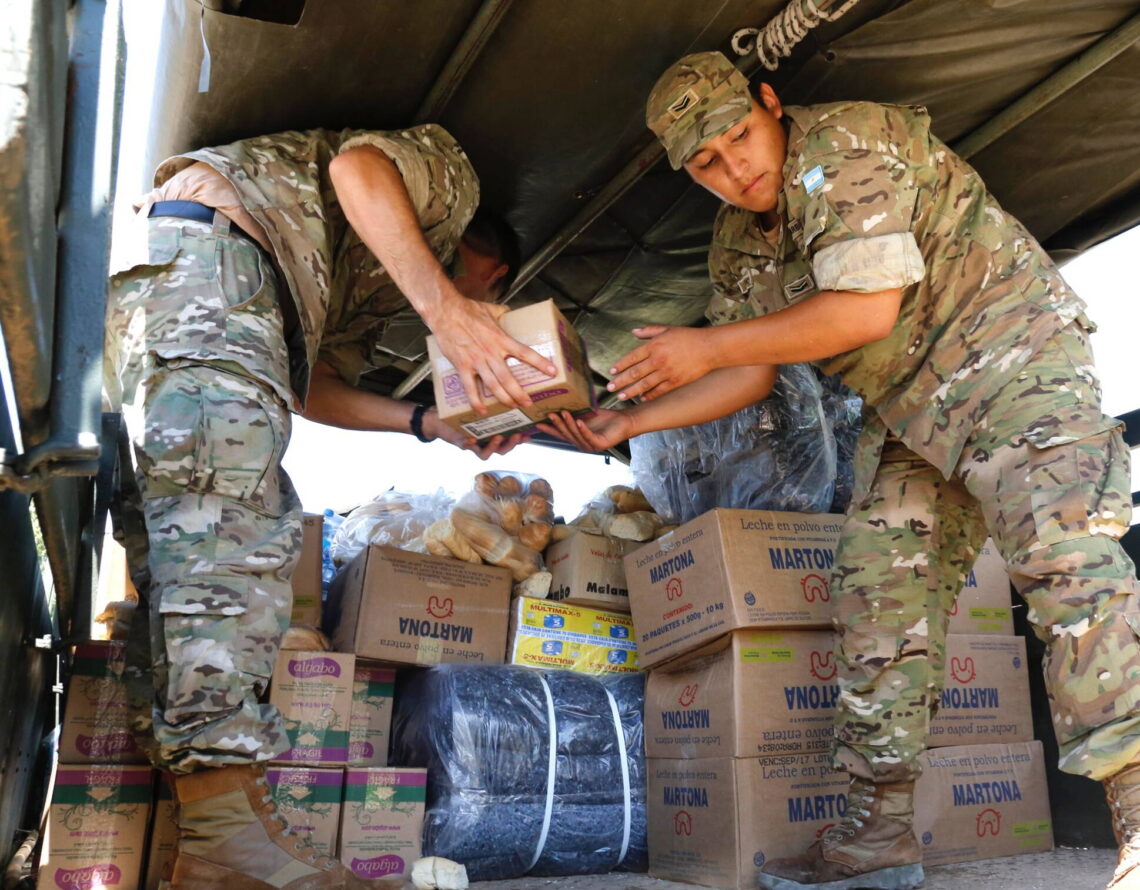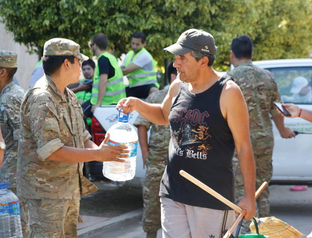Se distribuye agua potable, alimentos no perecederos, ropa, pañales, productos de limpieza como alcohol en gel, lavandina y toallas húmedas, repelentes, colchones, frazadas y zapatillas, entre otros productos.