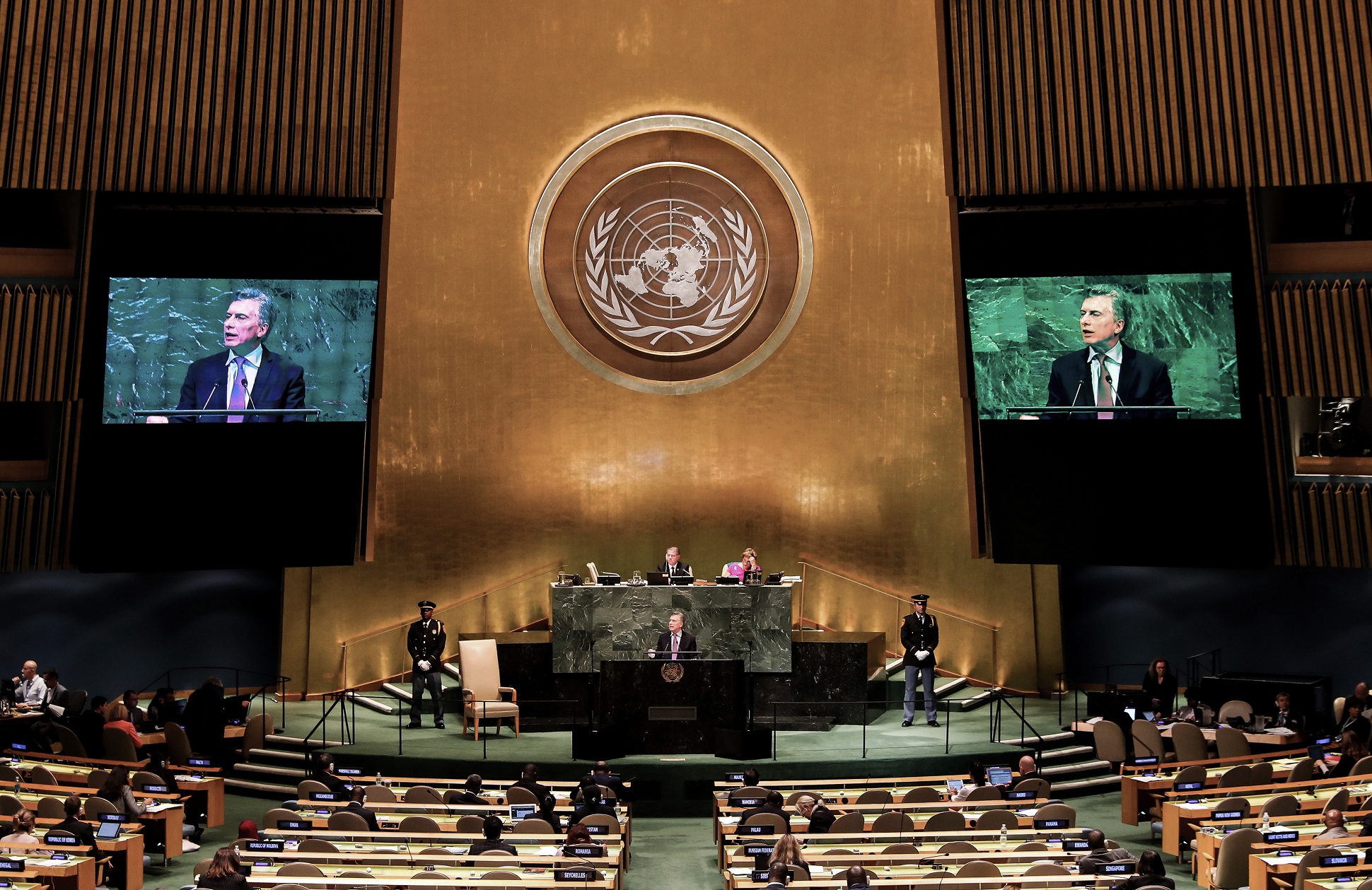 “Es un honor volver a esta Asamblea para compartir con ustedes una visión sobre la etapa que estamos viviendo los argentinos y ratificar nuestro compromiso con una Argentina protagonista e integrada al mundo”, dijo Macri en el inicio de su mensaje.